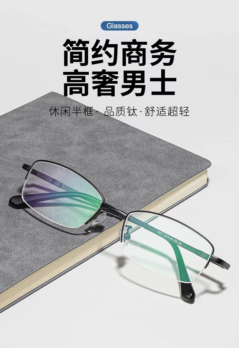 AJ 新款男士商务眼镜框超轻纯钛半框眼镜光学架